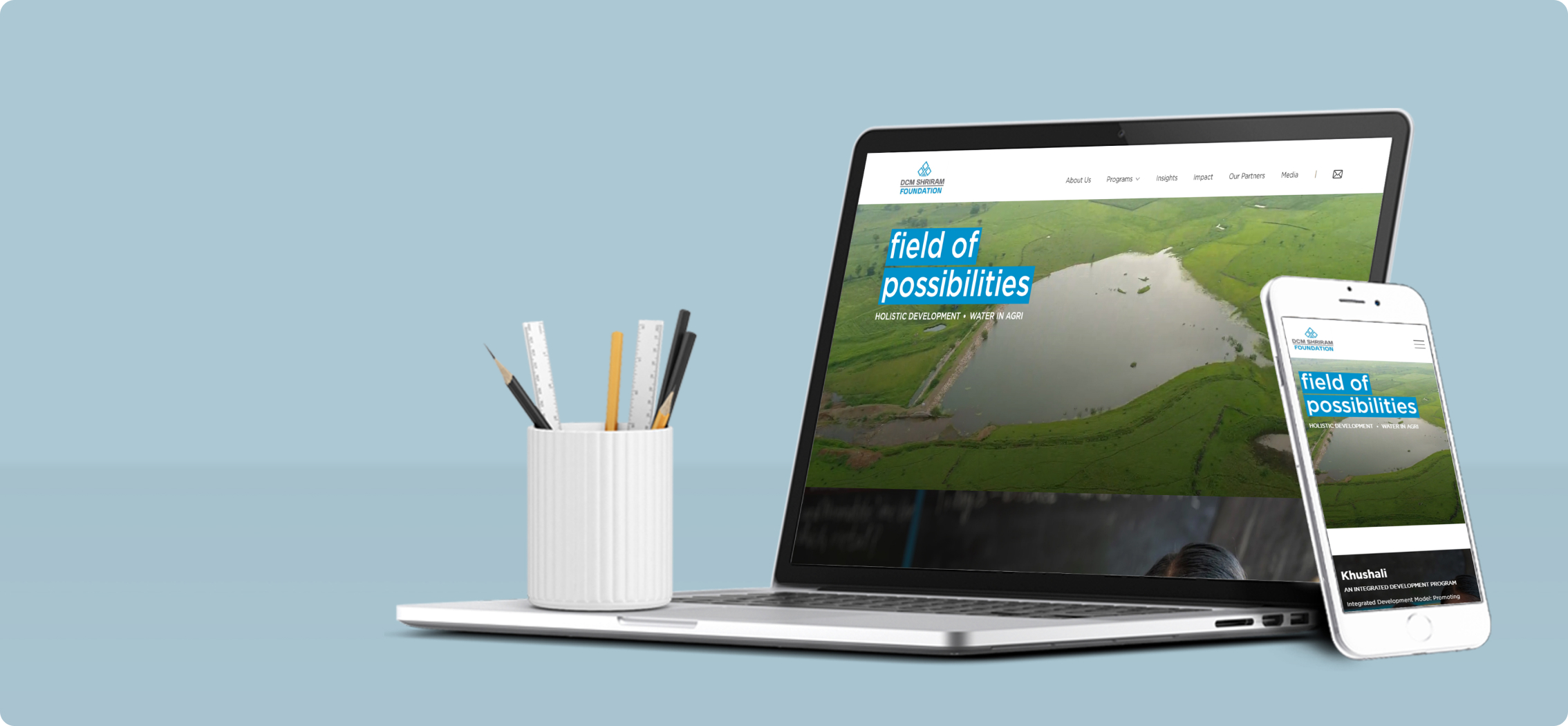 While creating the website we went deep into the company’s ethos, culture and practices and the content flowed easily from there. Long before Corporate Social Responsibility was a mandate, DCM Shriram was already dedicated to improving the lives of people directly and indirectly associated with the company. The website allows one to navigate the extent of these company practices through its various programmes and initiatives, and the impact of a caring company on its communities.